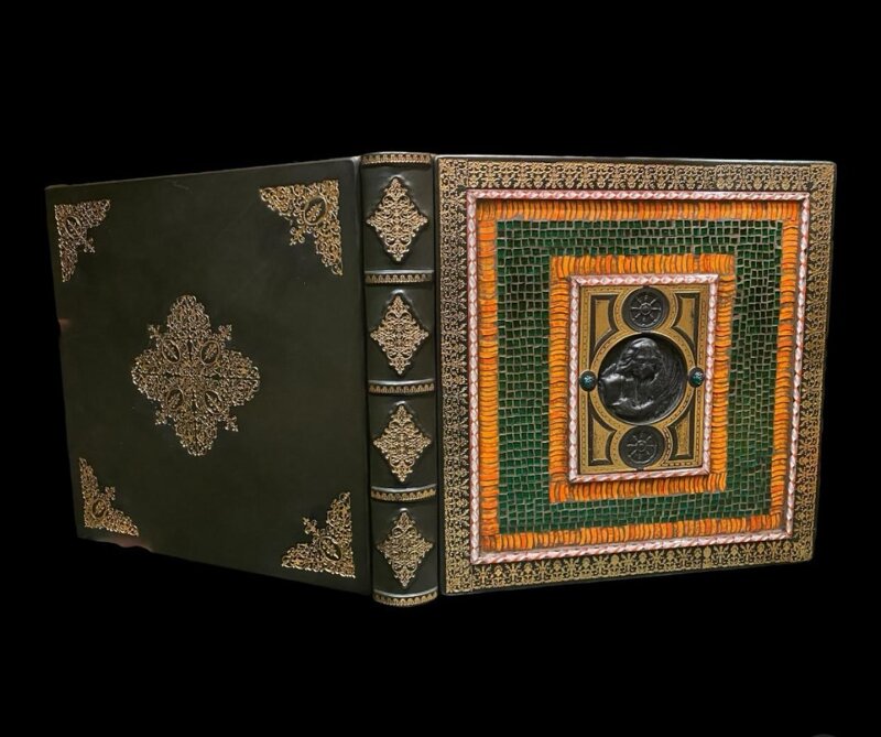 Album fotografico di grandi dimensioni 45x45 cm 60 fogli realizzato con un unico pezzo di pelle (non in tre parti) mosaico ed elementi in vetro di Murano