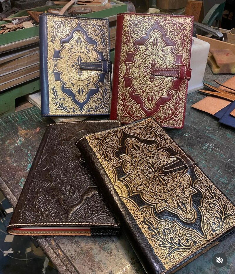 Book cover in pelle di vitello stampato a caldo con antico clichè, fornito di interno con linea o bianco.
